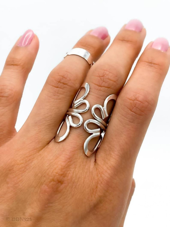 انگشتر نقره زنانه با طراحی گلهای باز و زیبا سرمایه هنری ساخت دست هنرمندان داخلی تولید داخل ساخته شده از نقره اصل باکیفیت بالا مناسب برای استفاده روزمره و مهمانیها قابل ست شدن با انواع استایلهای زنانه بسیار پرجلوه زیبا و چشم نواز.